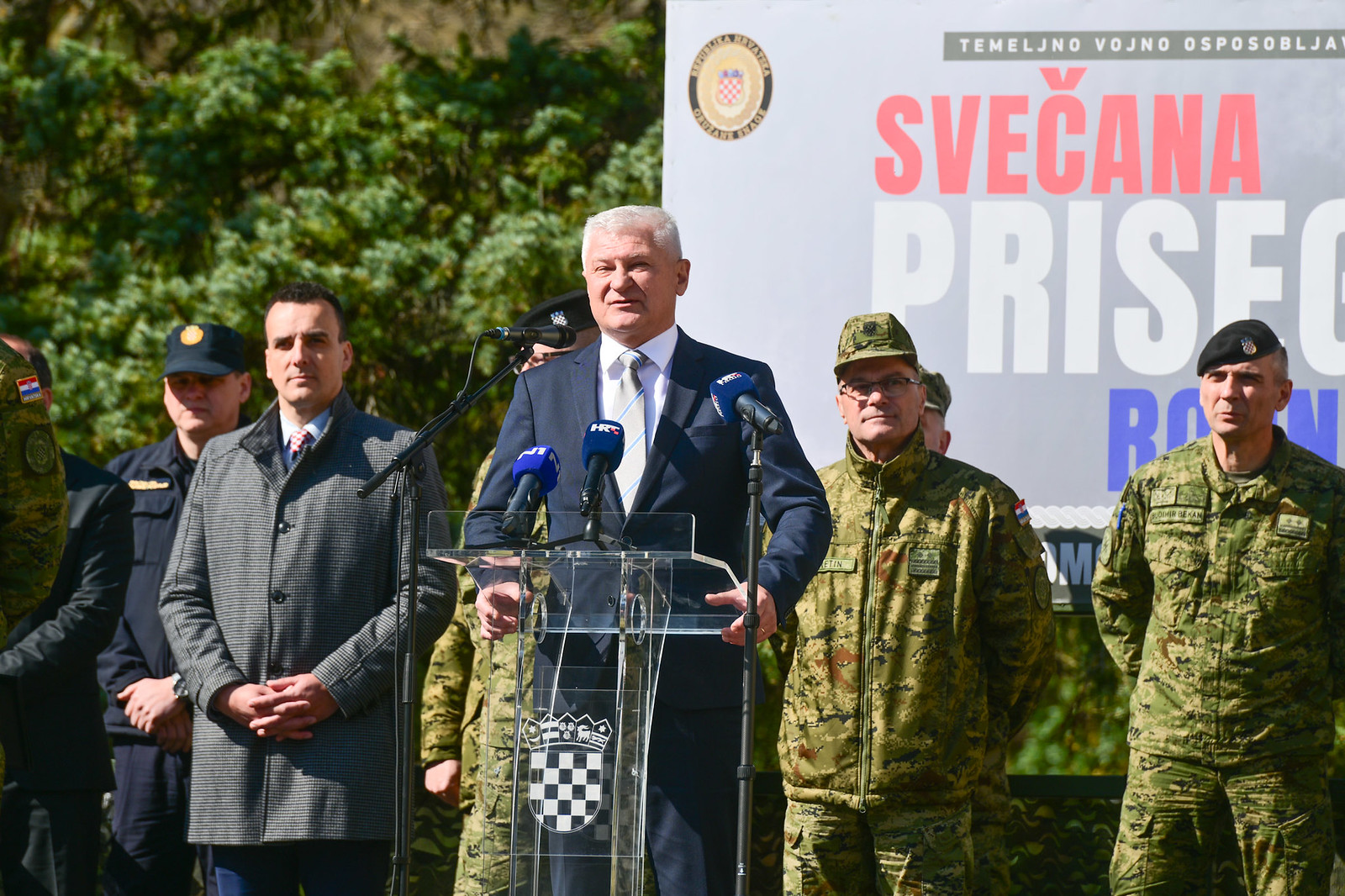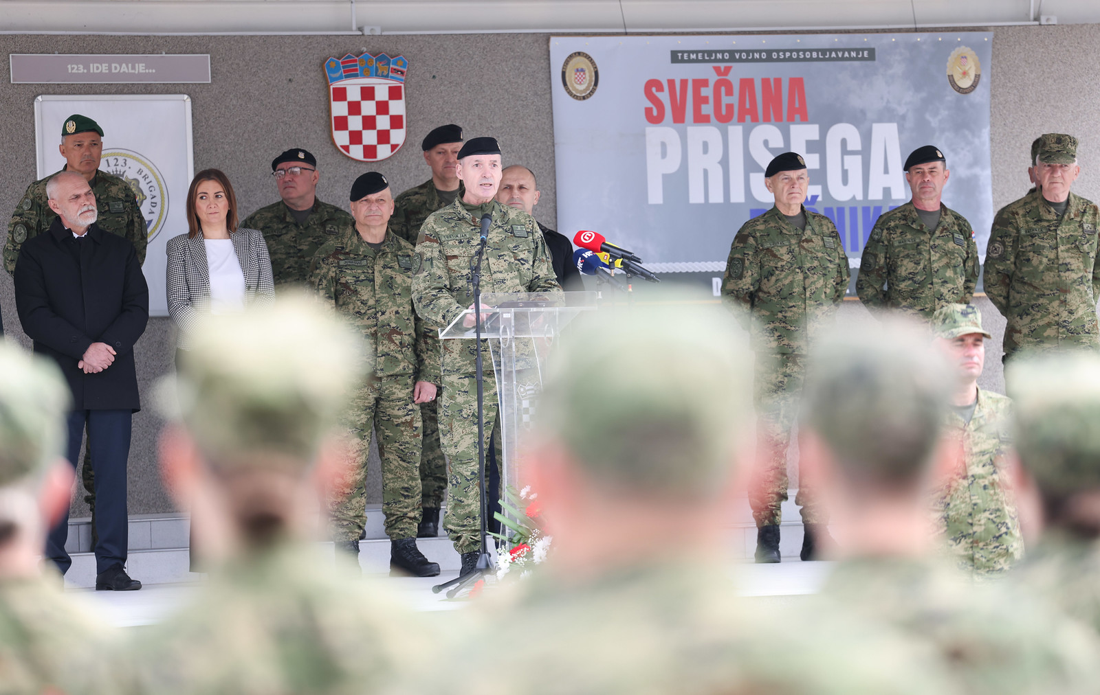 Načelnik Glavnog stožera Oružanih snaga RH general-pukovnik Tihomir Kundid čestitao je ročnicama i ročnicima na ovom svečanom trenutku te zahvalio na njihovoj odluci da pristupe temeljnom vojnom osposobljavanju.