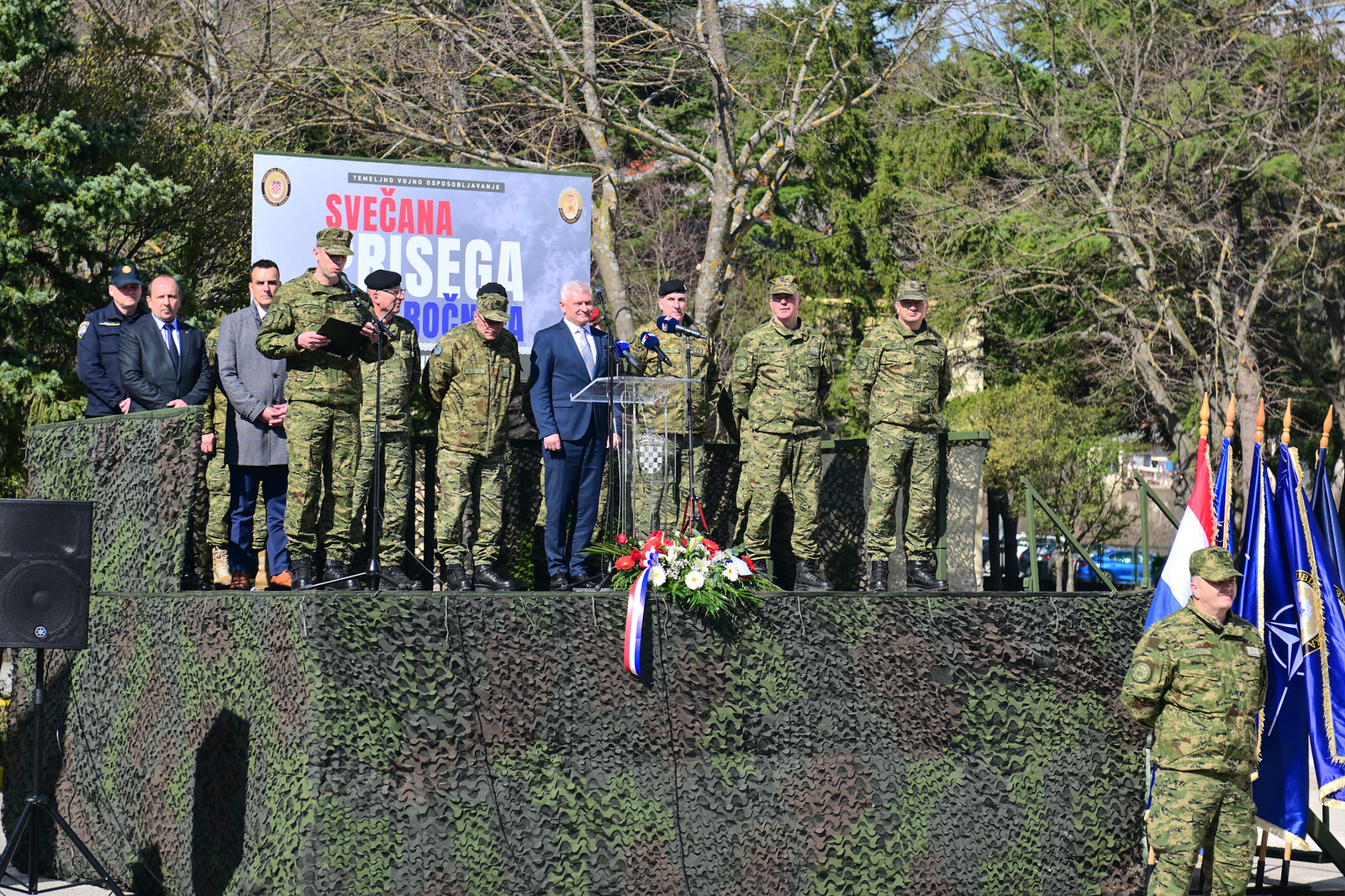 Istaknuo je kako se ovom svečanom prisegom obvezuju na vjernost i služenje domovini te da sada slijedi intenzivan ciklus temeljnog vojnog osposobljavanja, kroz koji će ročnici dodatno unaprijediti razinu svojih psihofizičkih sposobnosti.