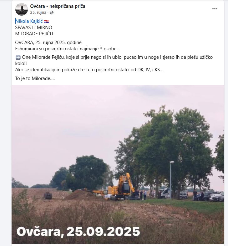 Prije mjesec dana, kad je objavljeno da su otkrivene masovne grobnice na Ovčari i Petrovačkoj doli i da je otkriveno nekoliko tijela, Kajkić je na Facebooku objavio:
