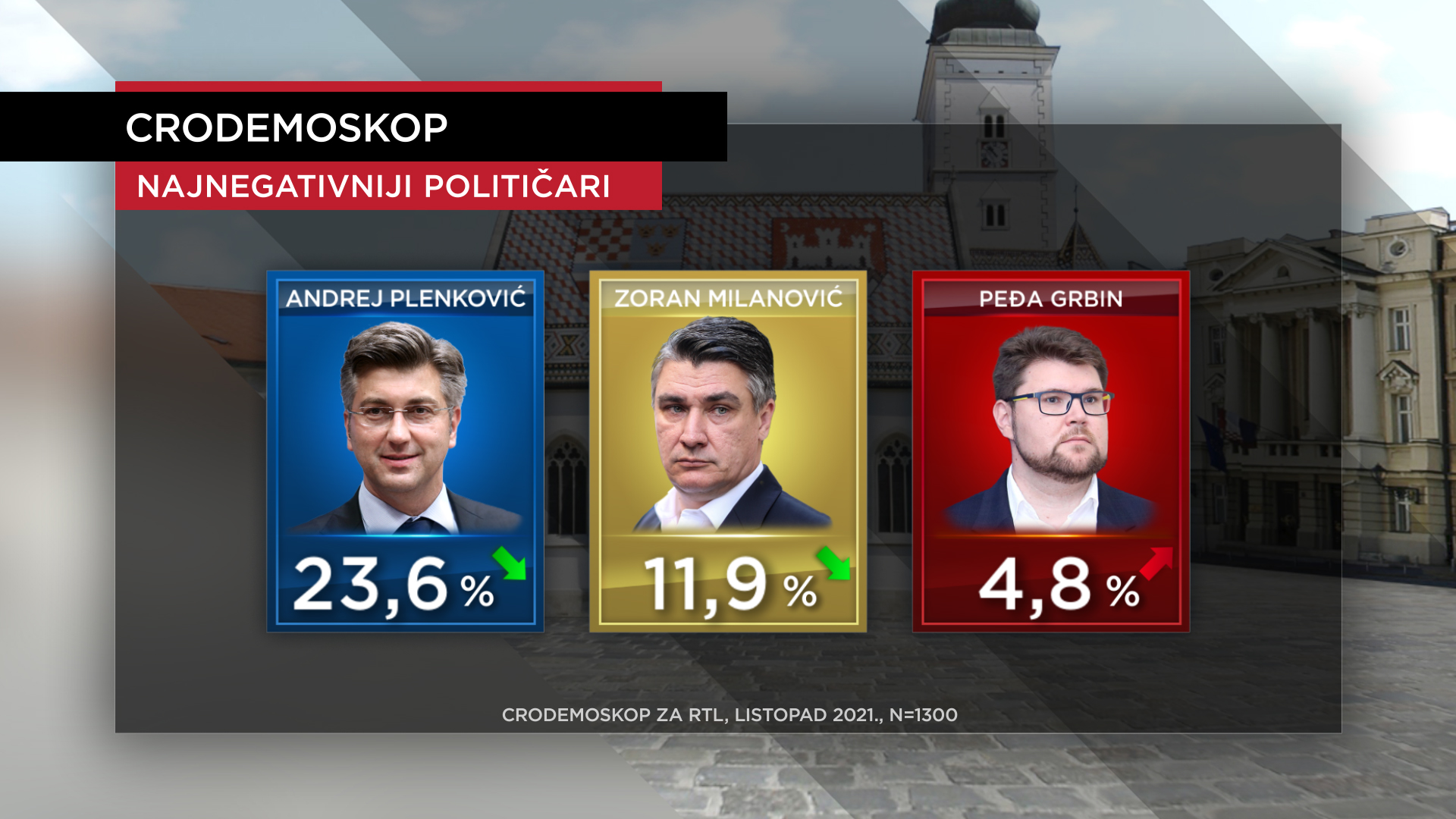 Isti, vodeći dvojac političara u zemlji, ali s obrnutim redoslijedom na vrhu je i neprestižne ljestvice. Iako s nešto nižim negativnim doživljajem premijer Plenković ostaje najnegativac u zemlji; stav je to gotovo četvrtine ispitanika (listopad 23,6 posto – rujan 24,2 posto).