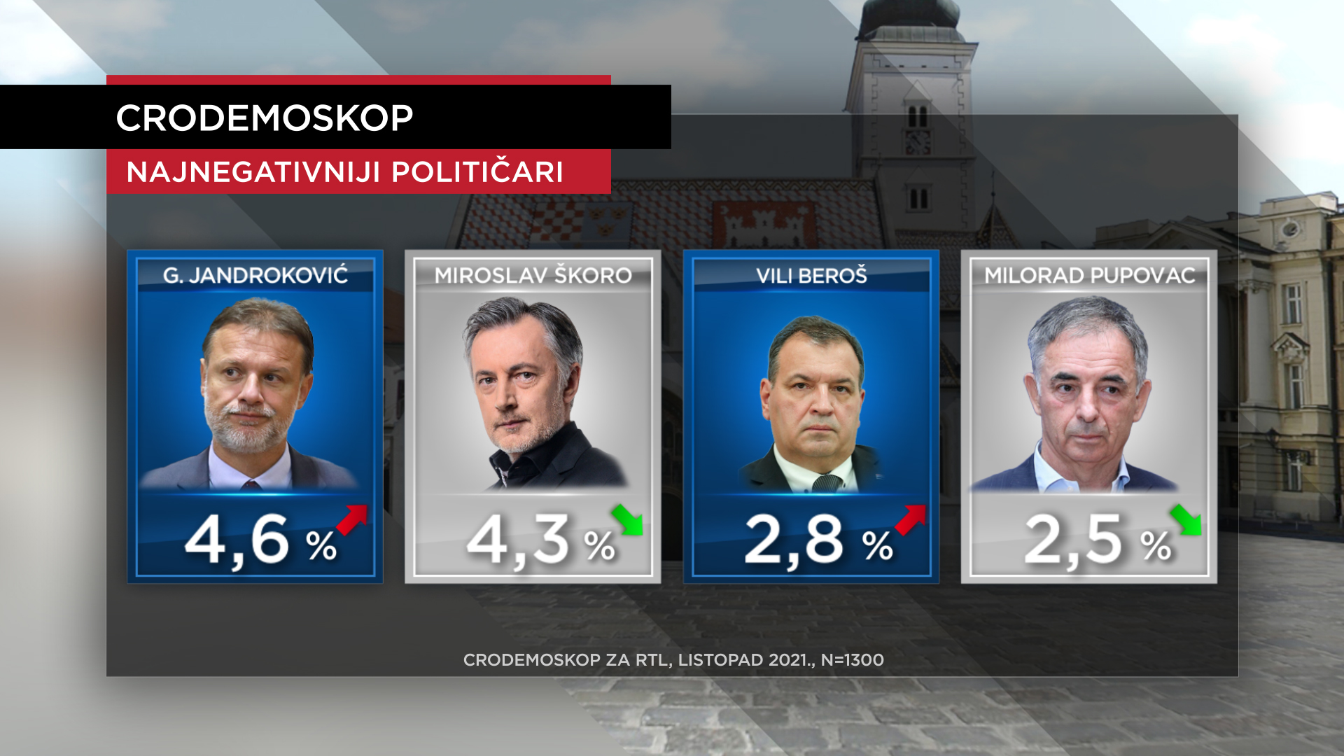 U top deset najnegativaca još su i Zlatko Hasanbegović (listopad 1,6 posto – rujan 2,1 posto) i Hrvoje Zekanović (listopad 1,6 posto – rujan 0,7 posto), a da su negativni svi političari misli gotovo 12 posto građana. Prošli mjesec to je mislilo skoro 13 posto ispitanika.