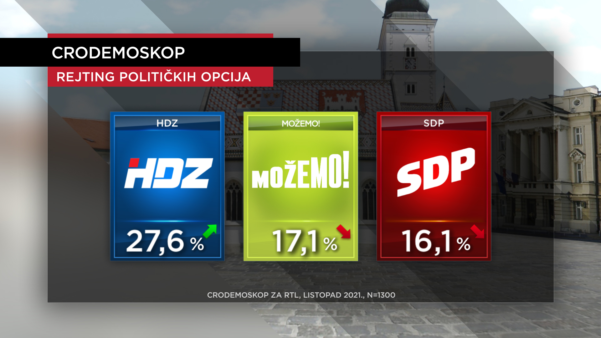 Pad rejtinga u odnosu na rujan (17,2 posto) bilježi i MOŽEMO!, koji se ozbiljno poskliznuo na kadroviranju u Holdingu, i SDP čiji se i Klub u Saboru raspao pa su i tamo treća opcija.