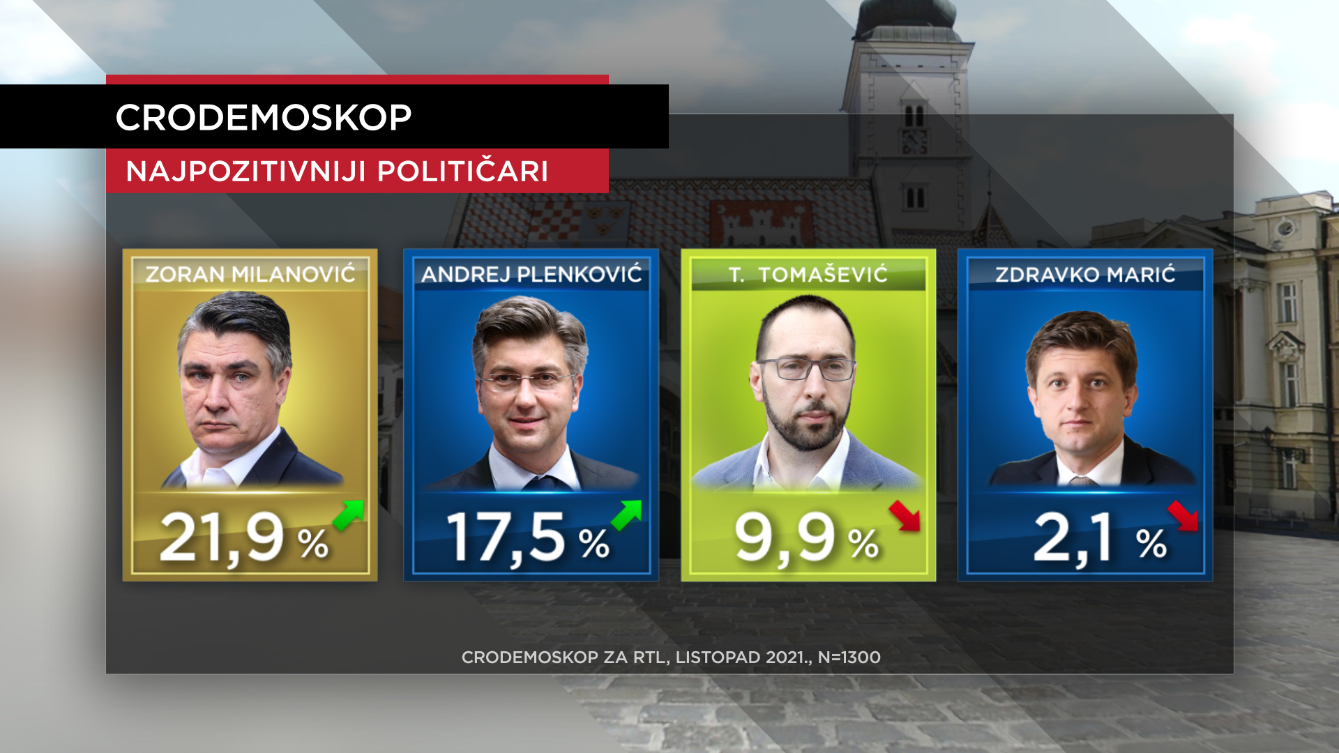 Na ljestvici najpozitivnijih političara vrh i dalje drži predsjednik Republike Zoran Milanović. S gotovo 22 posto povećao je prednost na vrhu u odnosu na rujan (18,7 posto).