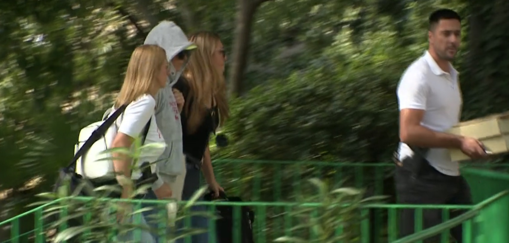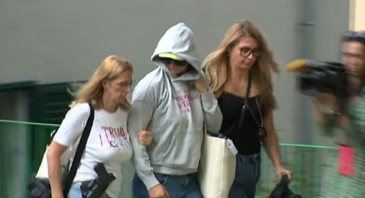 Tijekom privođenja lice je sakrivala tamnim naočalama i kapuljačom.