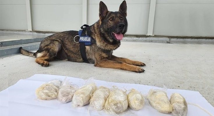 Zbog sumnje da se u vozilu Hyundai, zagrebačkih registarskih oznaka, nalazi droga pristupilo se vanjskom pregledu vozila uz korištenje Wolfa, ( na naslovnoj fotki) službenog policijskog psa za detekciju droga. Pas je odmah reagirao i potvrdio sumnju policijskih službenika PGP Imotski.