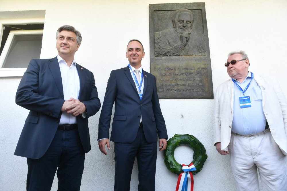Prije početka sjednice Nacionalnog odbora Zajednice utemeljitelja HDZ-a “Dr. Franjo Tuđman” položen je vijenac kod spomen-ploče dr. Franji Tuđmanu.