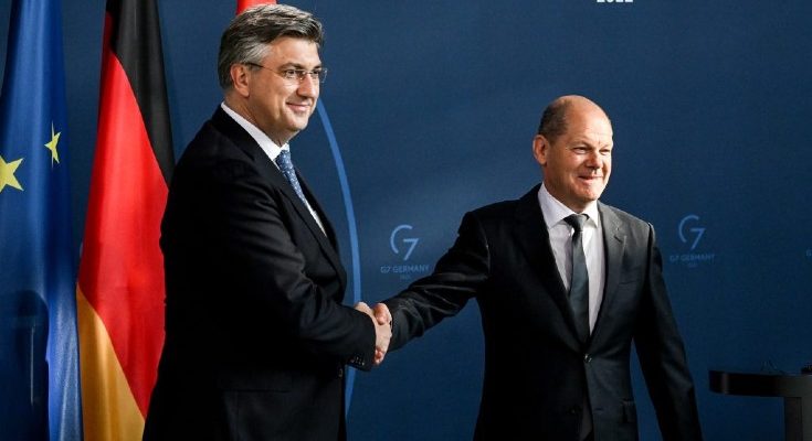 “Mi u potpunosti podržavamo napore koje Hrvatska čini u ostvarenju ovih ciljeva. Ja sam posebice kao ministar financija pomno pratio događaje oko ispunjenja uvjeta za ulazak u europodručje”, rekao je njemački kancelar Scholz nakon razgovora s hrvatskim premijerom u Berlinu.