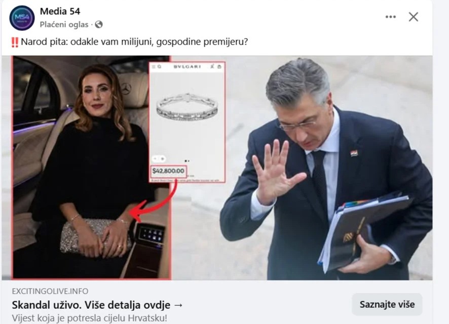 Ovo nije prvi put da se Plenković našao na udaru lažnih vijesti. Prije nekoliko mjeseci pisao je o pojavi lažne investicijske platforme koja je lažno koristila lik premijera Andreja Plenkovića i nudila navodnu investicijsku priliku zarade do 10.000 eura ulaganjem u INA-u.