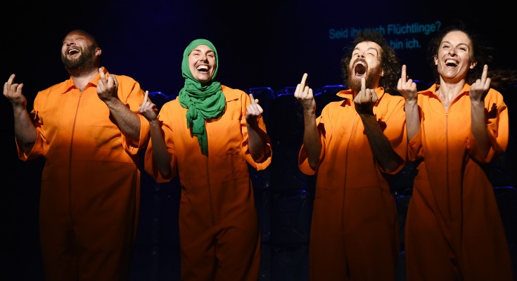 „Scenama koje je dio europske kazališne publike imao prilike vidjeti, od prizora gole žena s hidžabom na glavi koja u jednom trenutku iz svojega spolnog organa vadi nacionalnu zastavu, zida od kanistara goriva koji se urušava, glumaca u narančastim kombinezonima, plješću samo ljubitelji hardcorea. Nakon scene u kojoj žena vadi neku od nacionalnih zastava (ovisno u kojoj državi predstava igra) iz vagine, nedugo nakon toga glumac koji predstavlja Isusa Krista silazi s križa (napravljenog od plastičnih posuda) i siluje tu muslimanku.