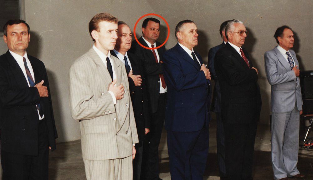 Josip Perković, Perica Jurič, Hrvoje Šarinić, Ivan Krmpotić, Josip Boljkovac, Franjo Tuđman i Josip Manolić na promociji Prvog hrvatskog redarstvenika