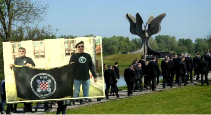 Uoči službene komemoracije u samom mjestu Jasenovac, na mjestu gdje je bila postavljena spomen-ploča poginulim pripadnicima HOS-a, dva su čovjeka stajala sa zastavom HOS-a na kojoj je i pozdrav „za dom spremni“.