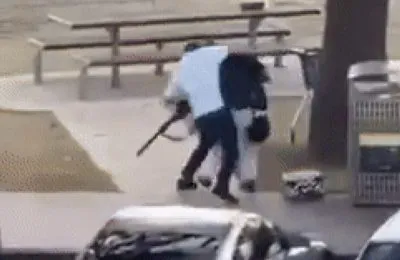 Na videosnimci koja se pojavila u javnosti vidi se kako policija pruža pomoć dvojici muškaraca koji leže na tlu. Ispod jednog od njih nalazi se sačmarica, dok se uokolo može uočiti više ispaljenih čahura.