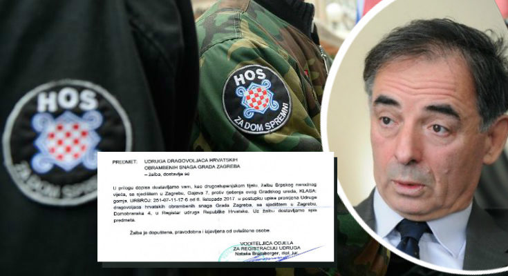 Miloprad Pupovac i Srpsko narodno vijeće tražili su od Gradskog ureda za upravu Grada Zagreba da poništi registracija udruga HOS-a. SNV-u smeta Statut udruga HOS-a, odnosno članak u kojem se govori o pečatu i grbu HOS-a.