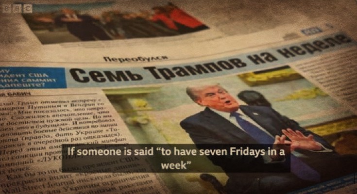 Komsomolskaja pravda piše da je Trump “toliko kontradiktoran da kao da ima sedam petaka u tjednu”, što u ruskom jeziku znači – nepredvidljiv i nedosljedan. Naslov njihova teksta glasi “Sedam Trumpova u tjednu”.