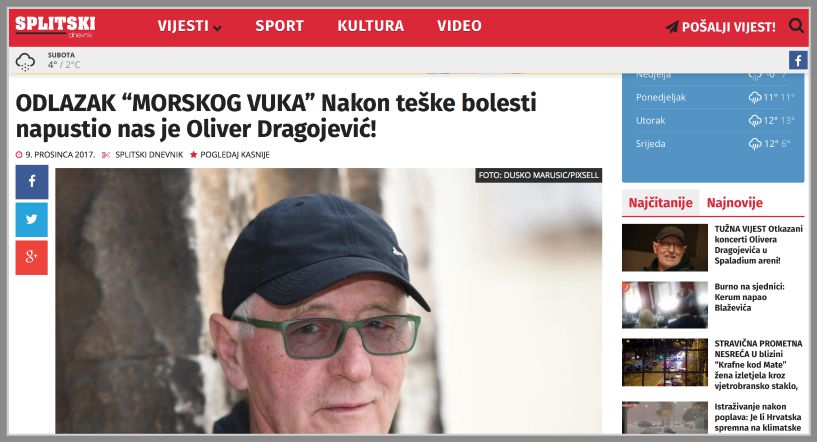 Splitski dnevnik na neko je vrijeme članak o Oliveru bio uklonio. Zatim su ga opet objavili, no više ne kao glavnu vijest na naslovnici, nego tek u zaglavlju i onda su ga, nakon dvadesetakminuta, ponovno posve uklonili s portala.