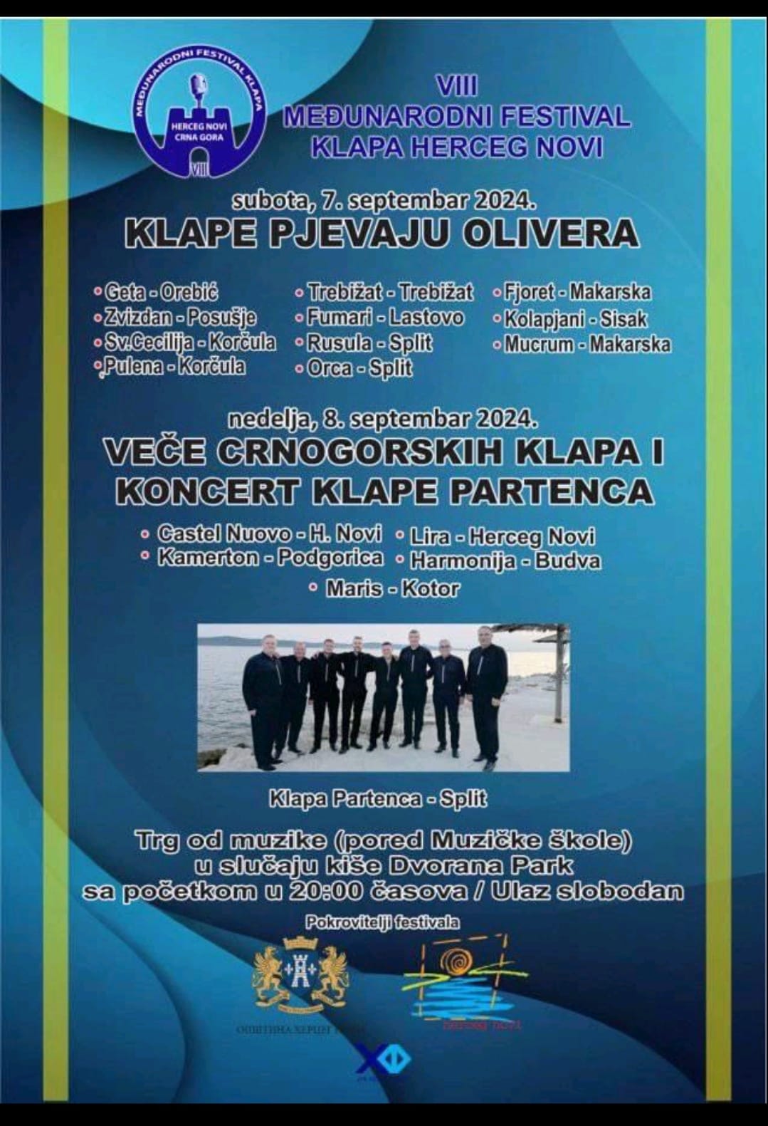 Festival klapa u Herceg Novom osnovan je 2017. godine i na njemu su i ranijih godina gostovale klape iz Hrvatske te, uz domaće izviđače, i poneka skupina iz Bosne i Hercegovine. Ove godine to su klapa Trebižat iz istoimenog naselja kraj Čapljine te klapa Zvizdan iz Posušja. Iako su iz novimalno BiH i te klape možemo smatrati hrvatskim.