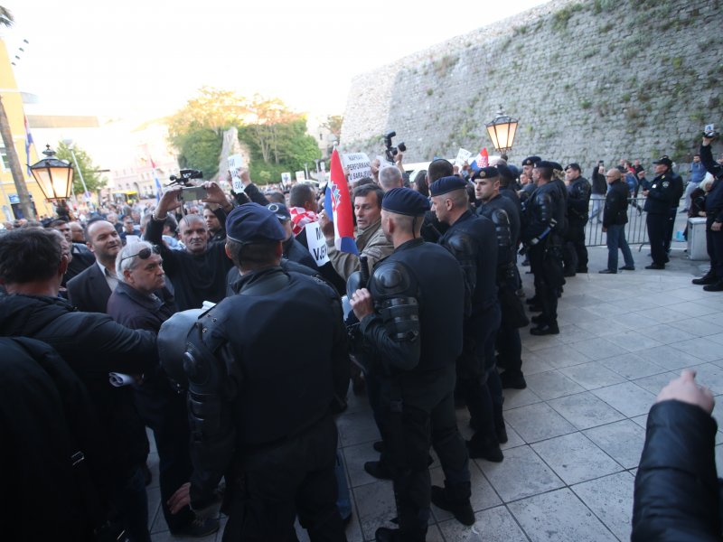 Dalmatinski portal je objavio da je razbijeno je staklo izloga na kazalištu, a policija je privela nekoliko osoba.