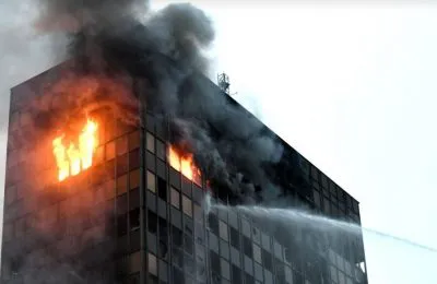 Vjesnikov neboder na Slavonskoj aveniji, u kojemu je požar izbio u ponedjeljak malo prije ponoći, gori i u utorak ujutro, padaju dijelovi pročelja, a s požarom se cijelu noć bore zagrebački vatrogasci, procjenjuje se da će njegovo gašenje potrajati cijeli dan.
