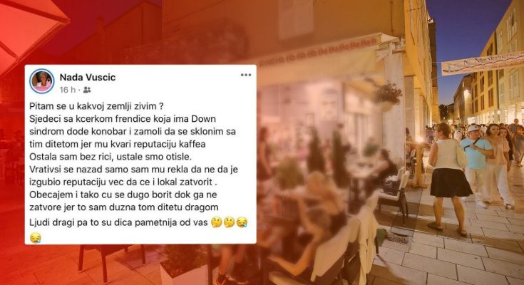 Priča o sramotnom postupku konobara jednog kafića na zadarskoj Kalelargi zapalila je društvene mreže. Ispričala ju je gospođa Nada koja je s kćerkicom prijateljice izbačena iz kafića zbog činjenice da djevojčica ima Down sindrom. Zamolili su ih da se udalje jer narušavaju reputaciju mjesta.