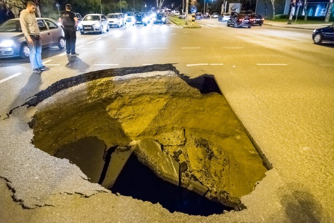 U PONEDFJELJAK 4. travnja, oko 21:30 sati na jednom od najprometnijih raskrižja, onome Slavonske avenije, Ulice Josipa Marohnića i Ulice XIII Vrbik, nasred ceste otvorila se golema rupa duga i široka po pet i duboka tri metra.