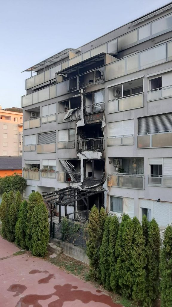 “Požarom zahvaćena nadstrešnica u prizemlju površine 4×4 m koja je u potpunosti izgorjela i ulazna vrata stana u prizemlju. Požar se proširio na balkon na 1. katu pri čemu su oštećena balkonska vrata stana površine 50 m2, te su oštećeni balkoni na drugom, trećem i četvrtom katu površine 3×2 m”, objavili su vatrogasci