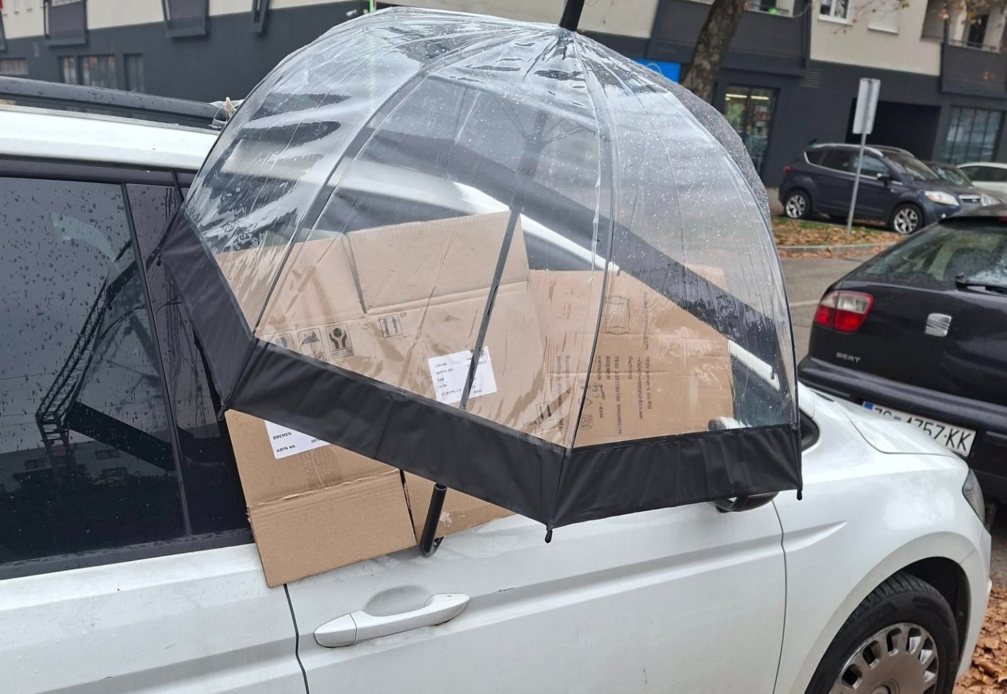 Početkom ovoga tjedna jedna je stanovnica Zagreba doživjela pravo malo iznenađenje nakon što je zbog žurbe ostavila otvoren prozor na automobilu. Kada se vratila do vozila, dočekao ju je prizor koji nije očekivala – netko je zaštitio otvoreni prozor improviziranom konstrukcijom od kartona i novokupljenog kišobrana.